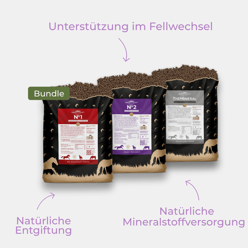 Viele Pferde kämpfen mit gesundheitlichen Problemen, die ihre Lebensqualität beeinträchtigen. Kristallkraft bietet gezielte Unterstützung bei Magenproblemen, Kotwasser, Entgiftung, Fell- und Hufproblemen. Unser Beifutter liefert wichtige Vitamine und Nährstoffe, die zur Versorgung und zum Wohlbefinden deines Pferdes beitragen.